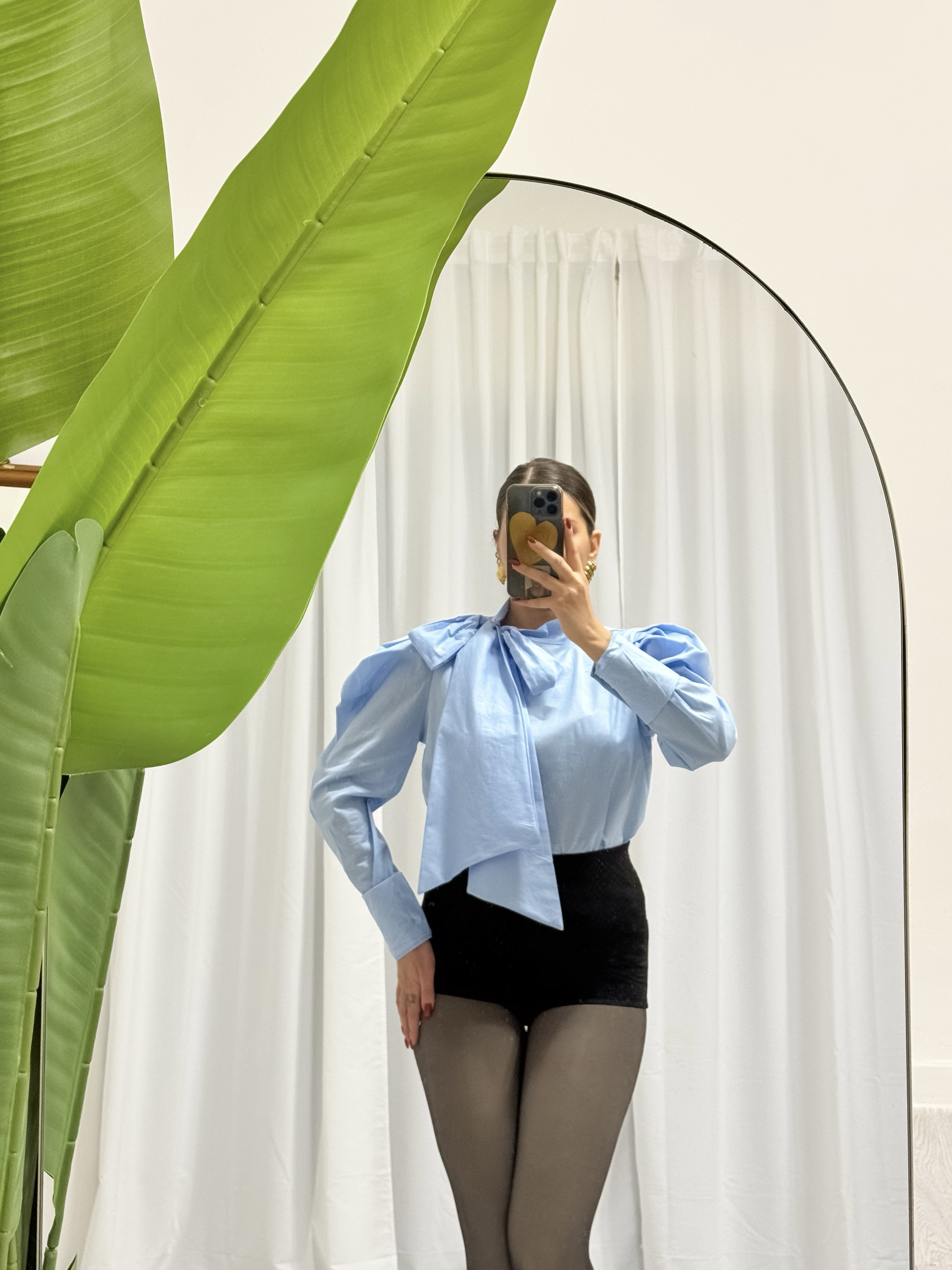 Fiocco regolabile- bottoncini sulla parte sinistra della spalla – manica a sbuffo – lunghezza normale