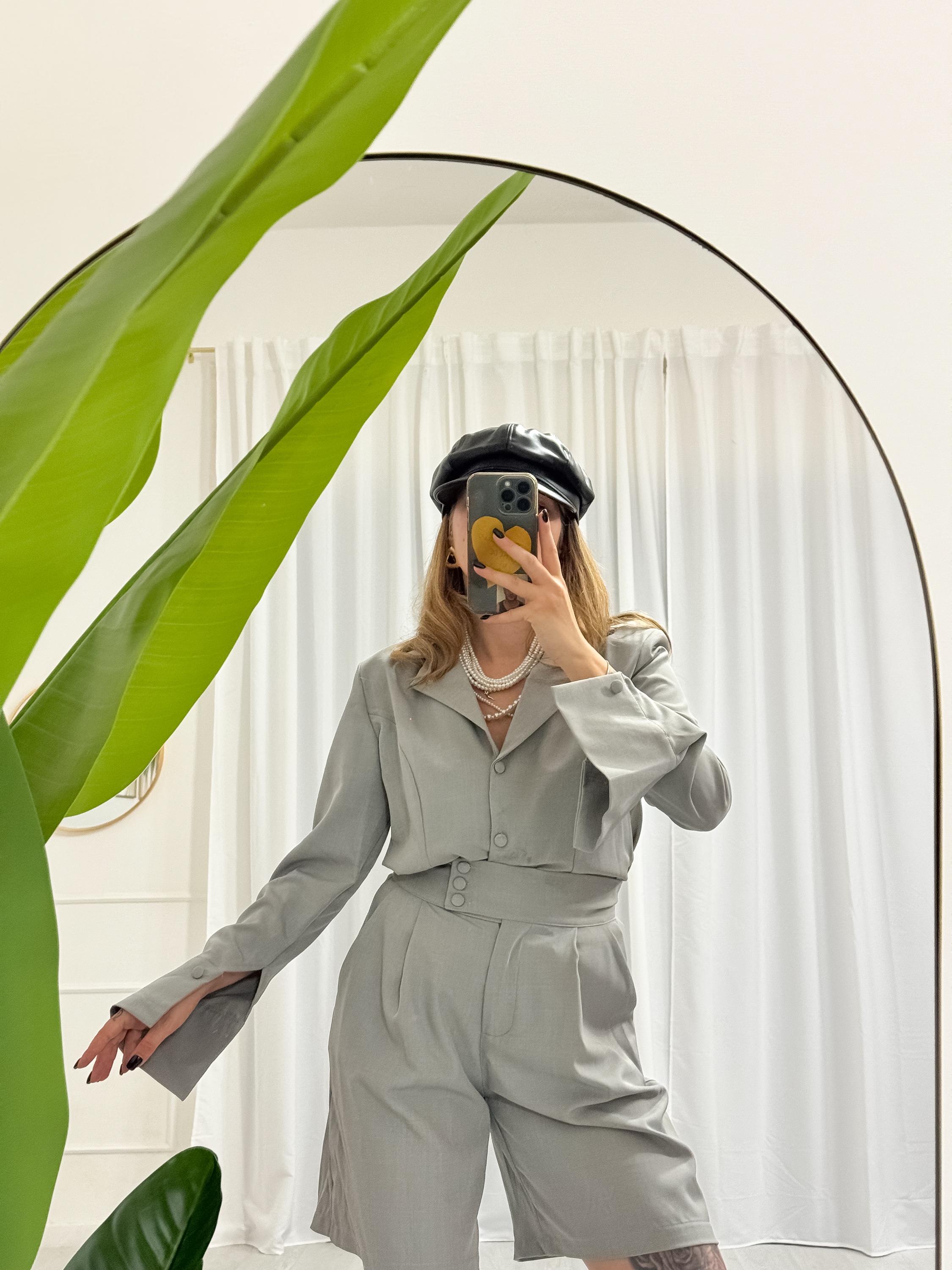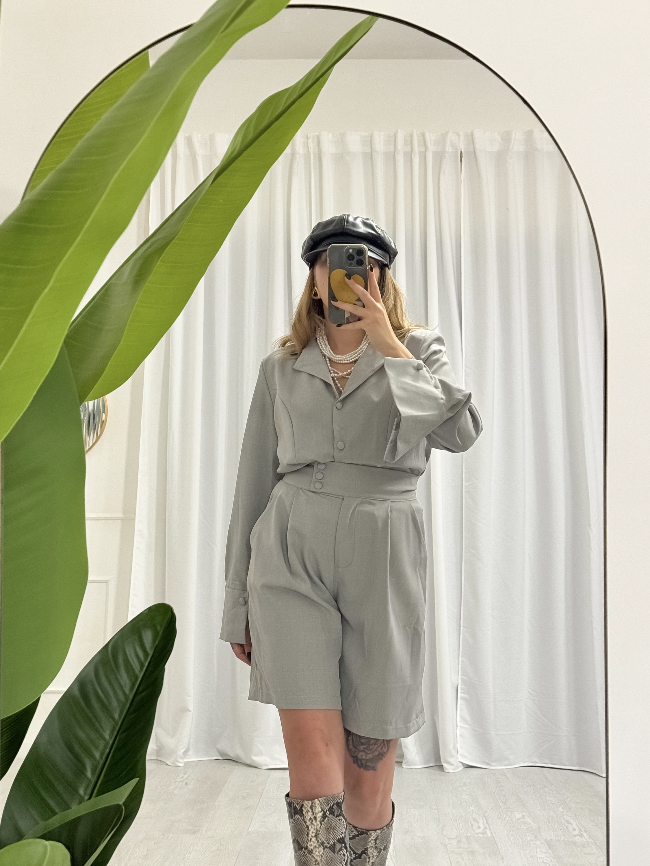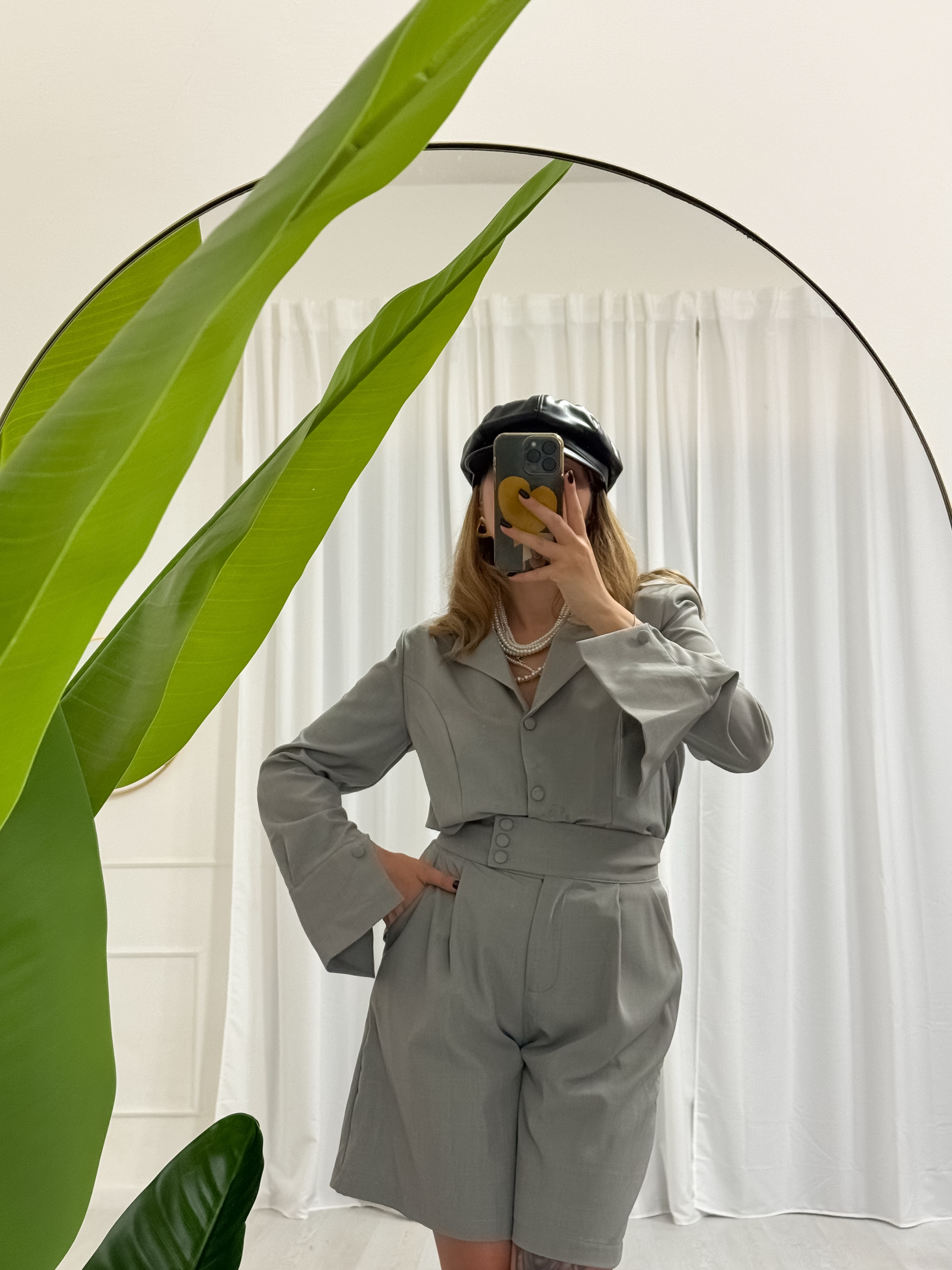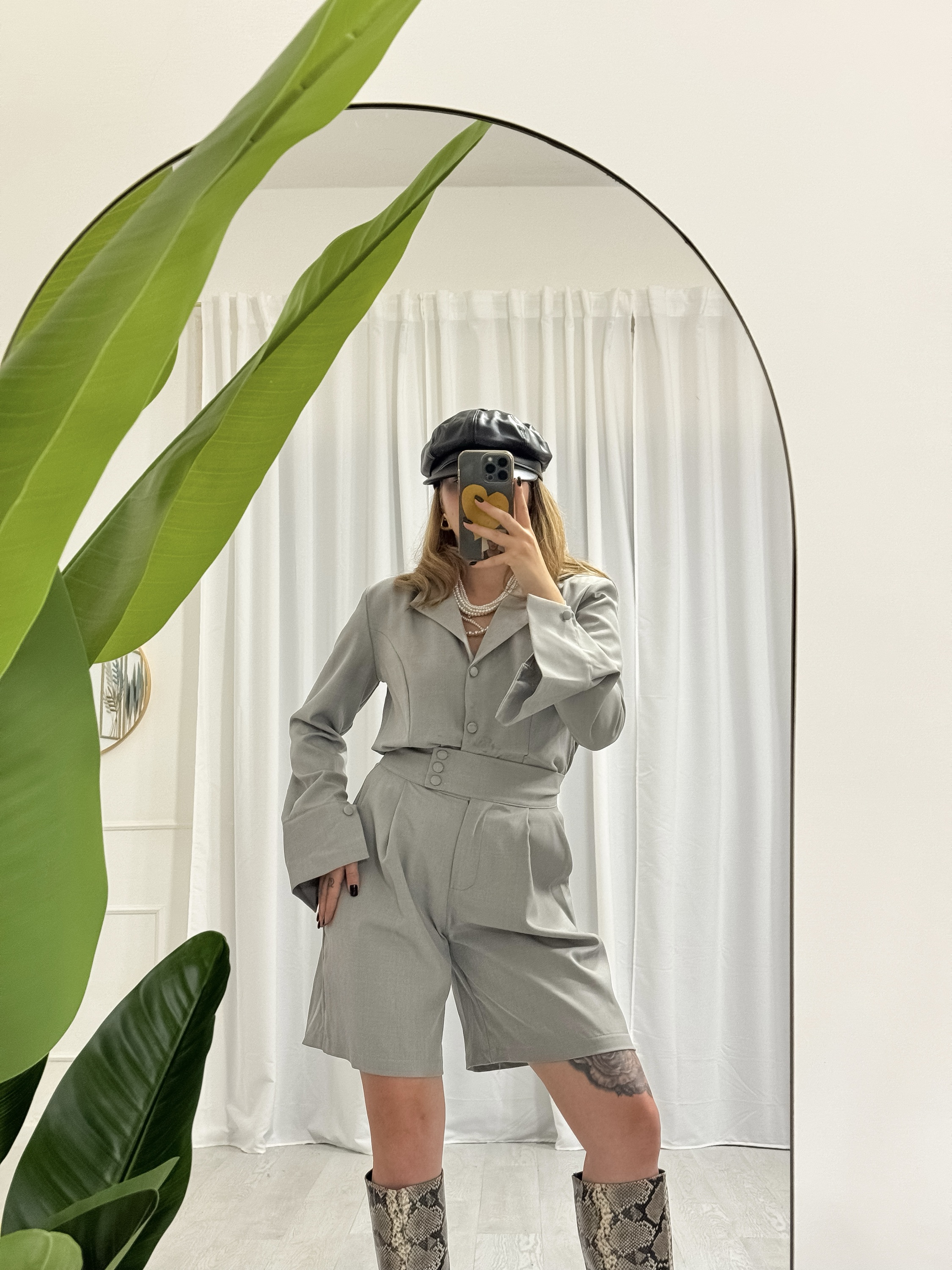 Composto da camicia + bermuda – camicia lunghezza normale – bottoncini rivestiti – bermuda con elastico sul retro – completamente elasticizzato