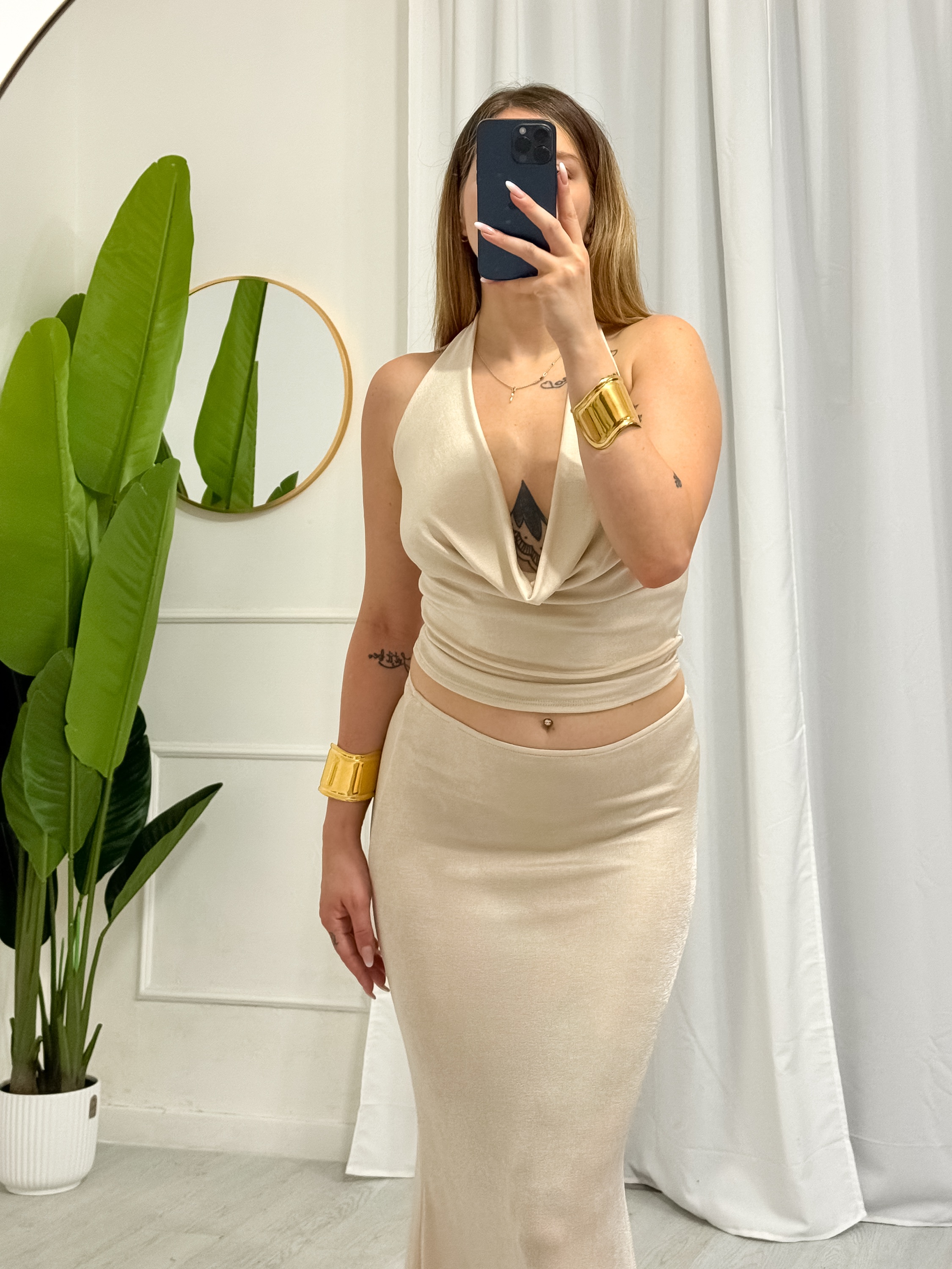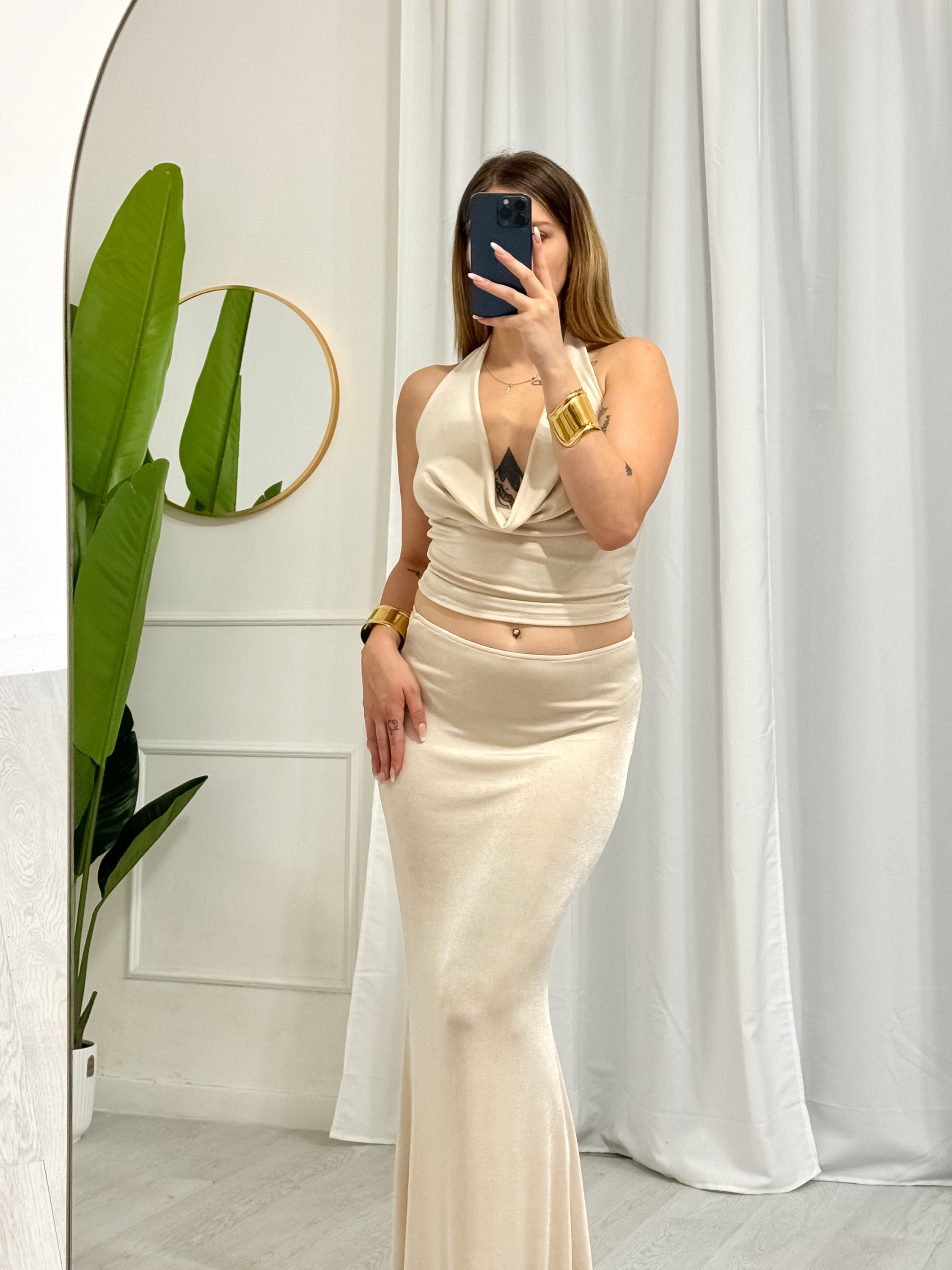 Composto da top + gonna – scollo all’americana- gonna lunga – completamente elasticizzato