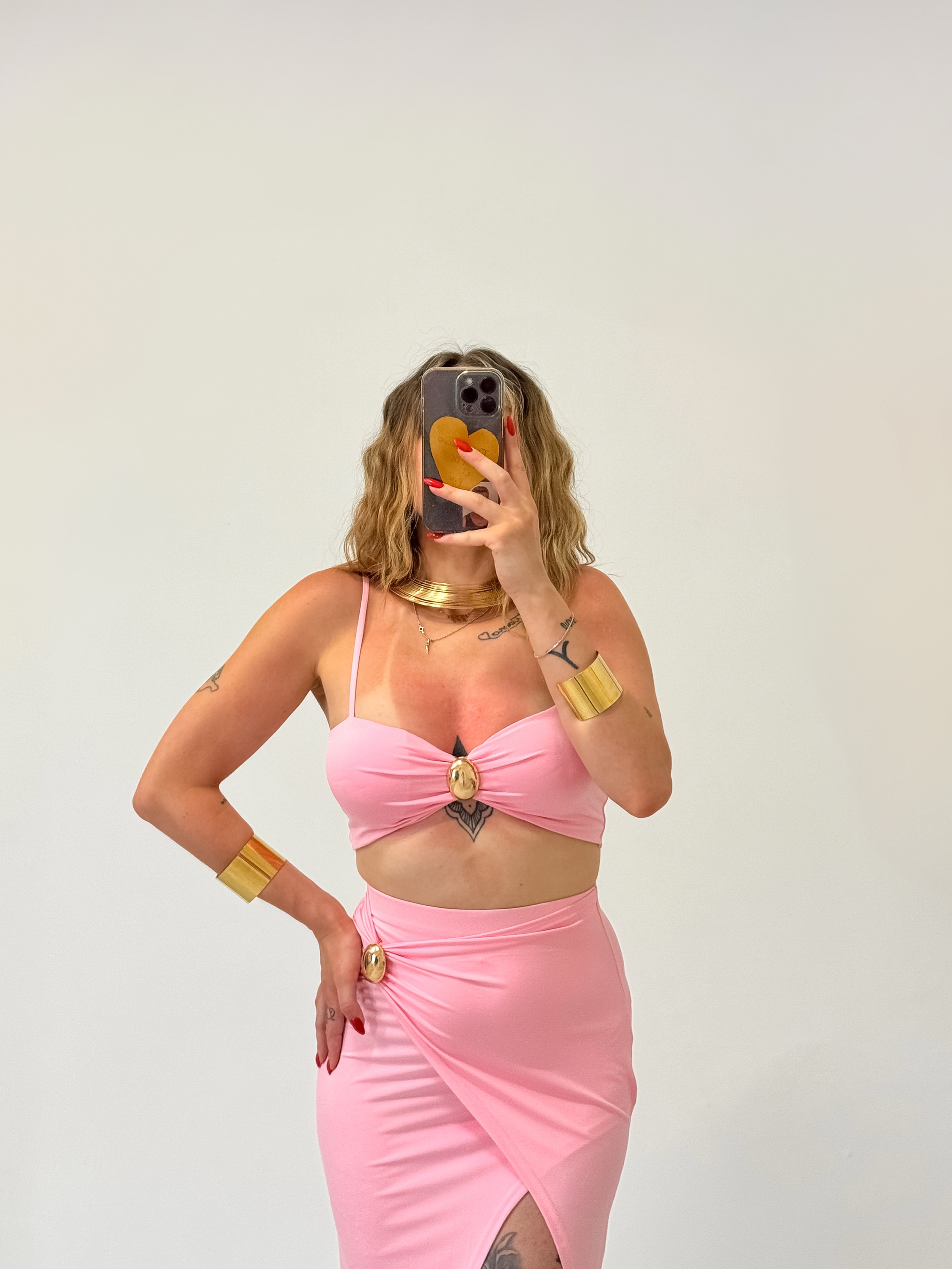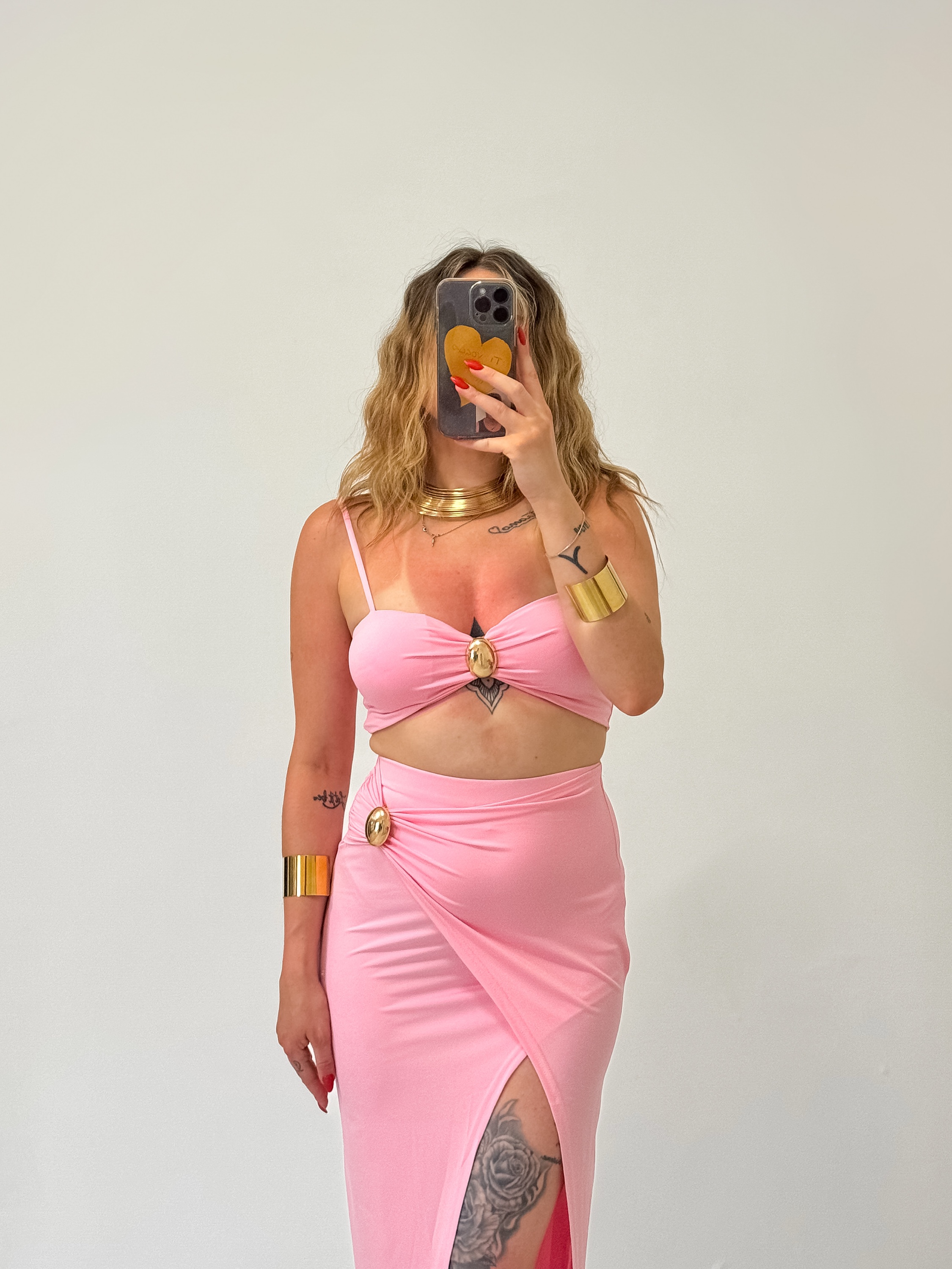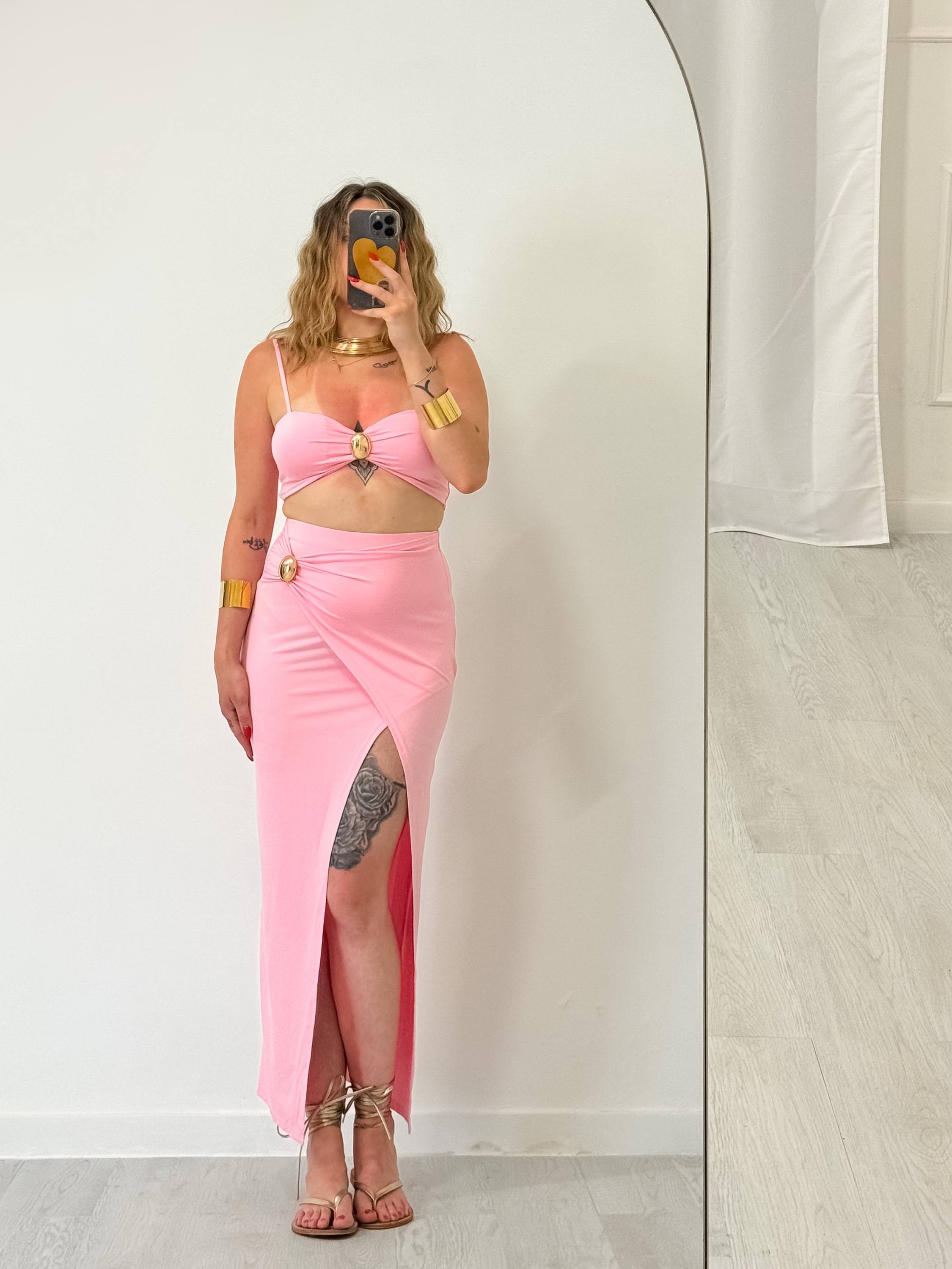 Cord-set composto da top + gonna – completamente elasticizzato- gonna con elastico in vita e spacco laterale