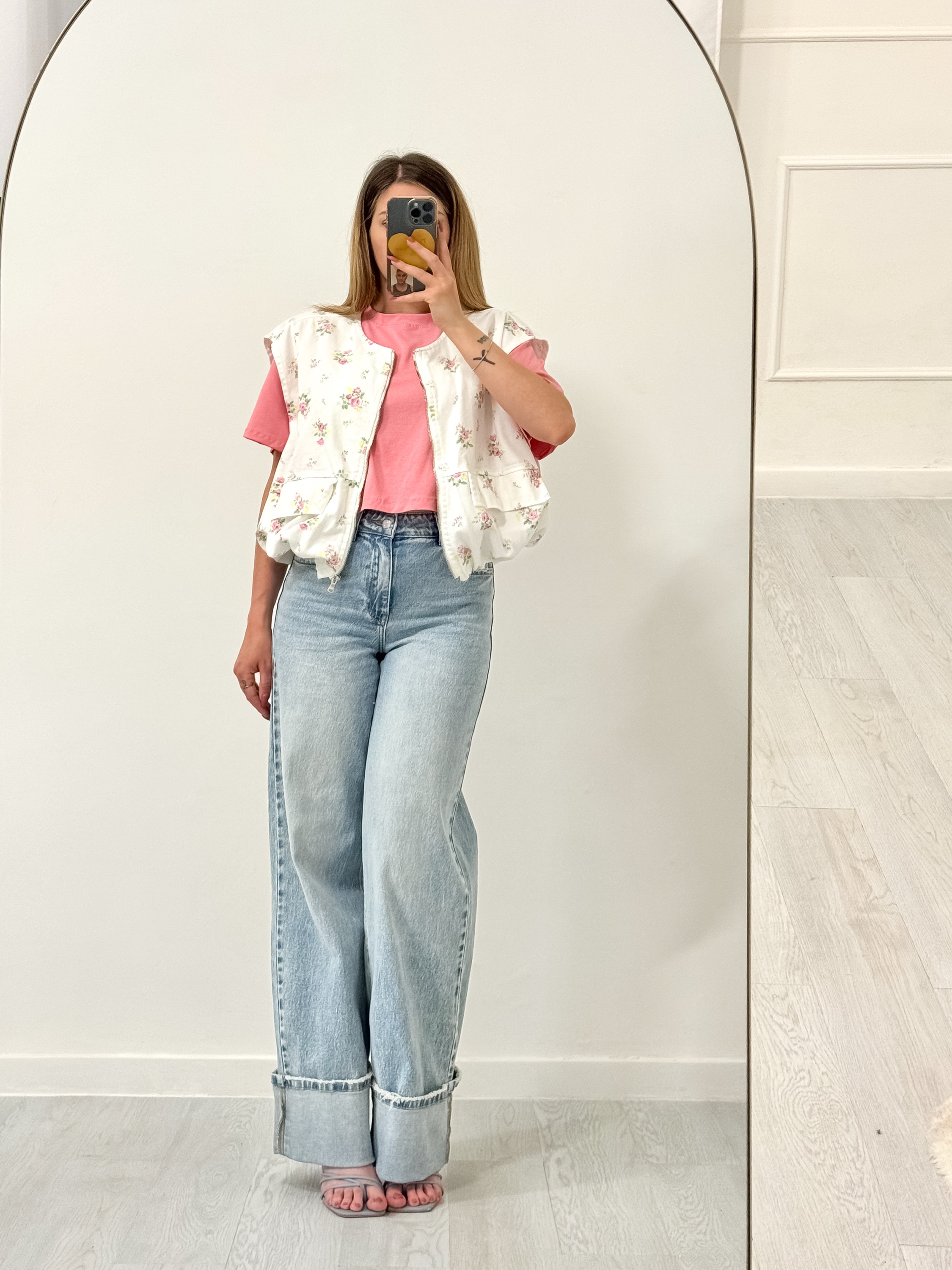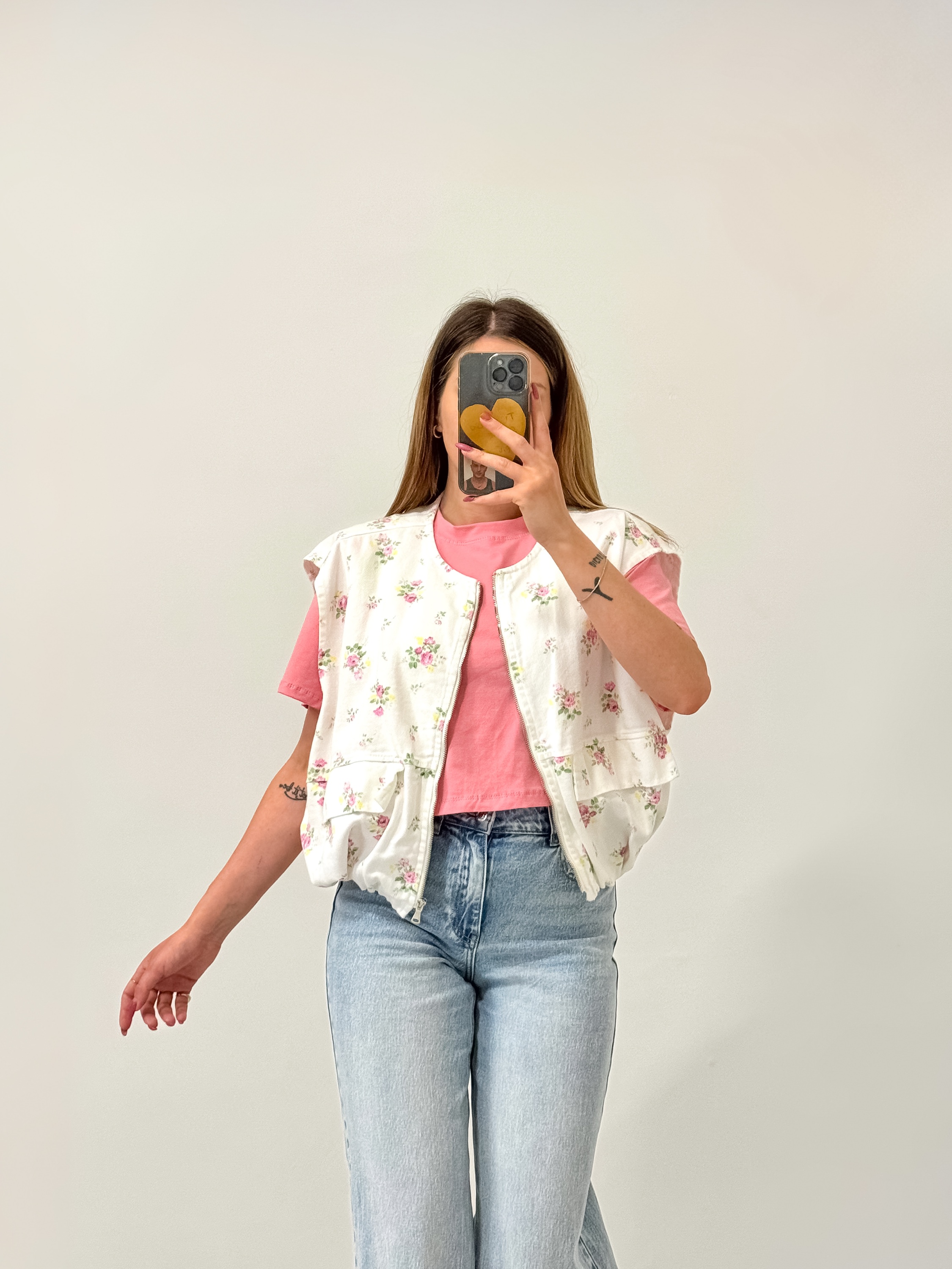 Gilet in Denim – elastico sull’orlo – 2 tasche – chiusura con zip