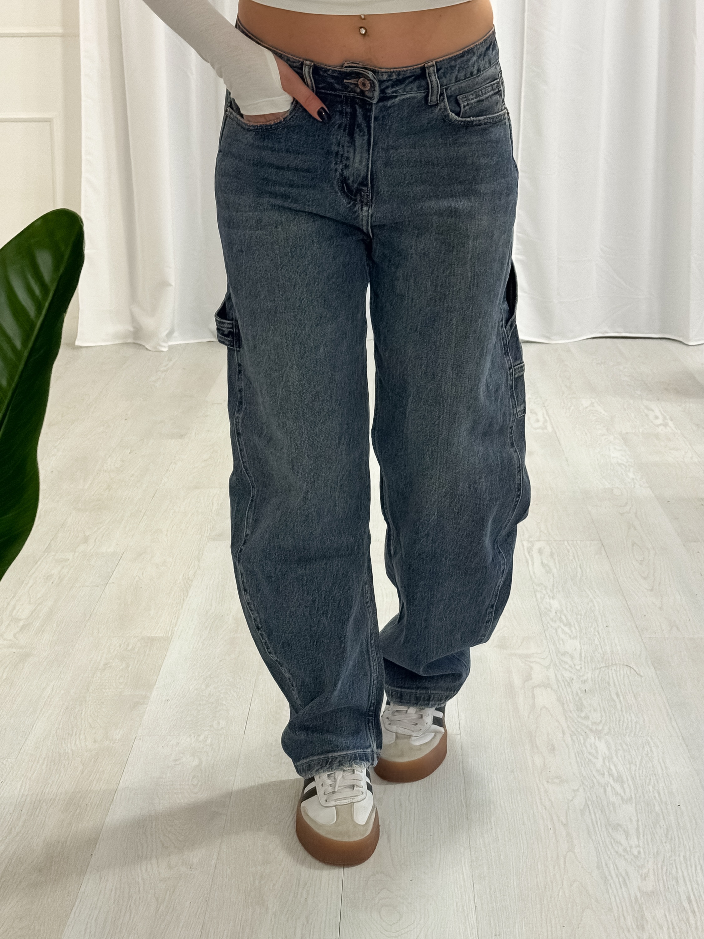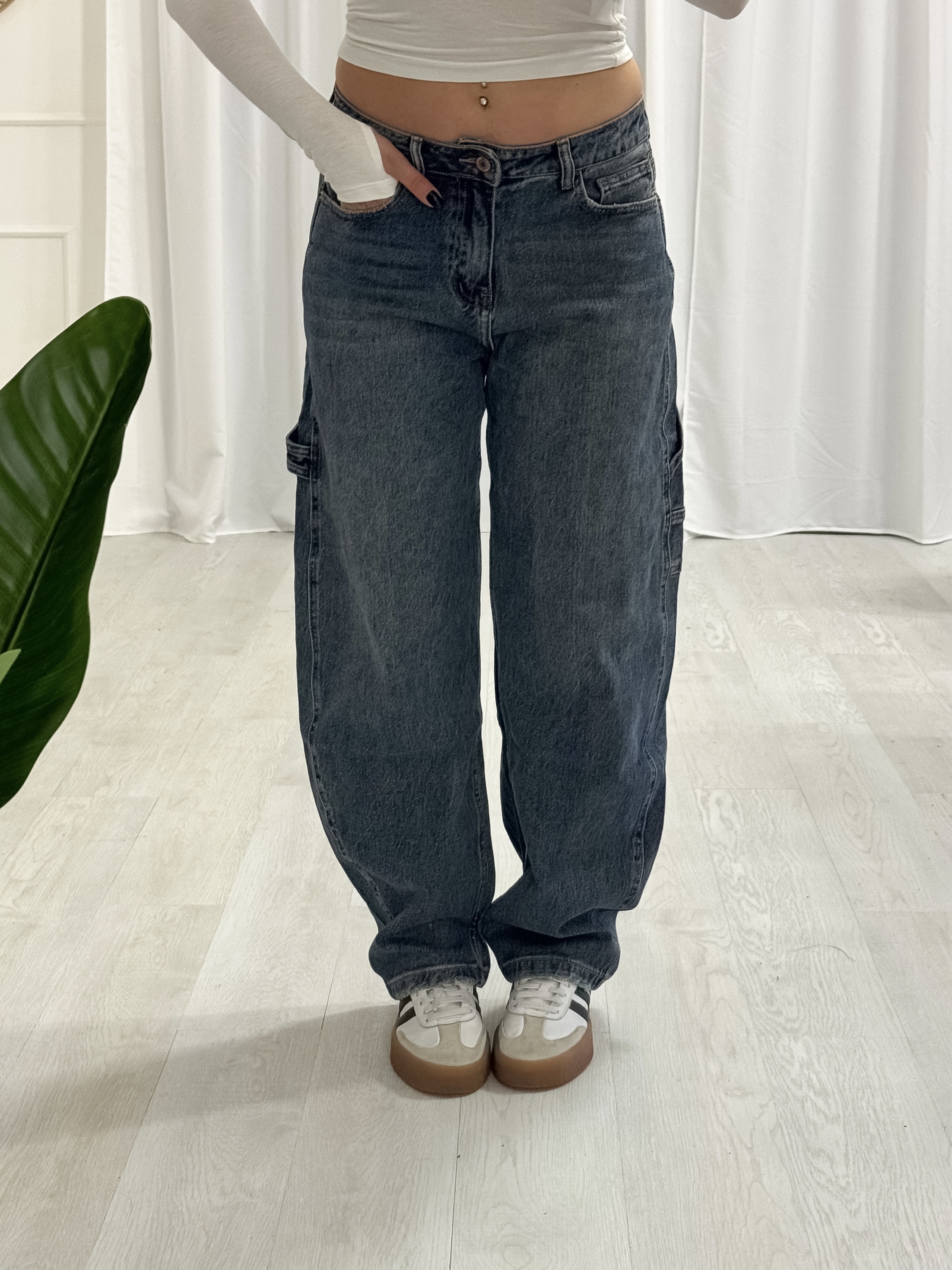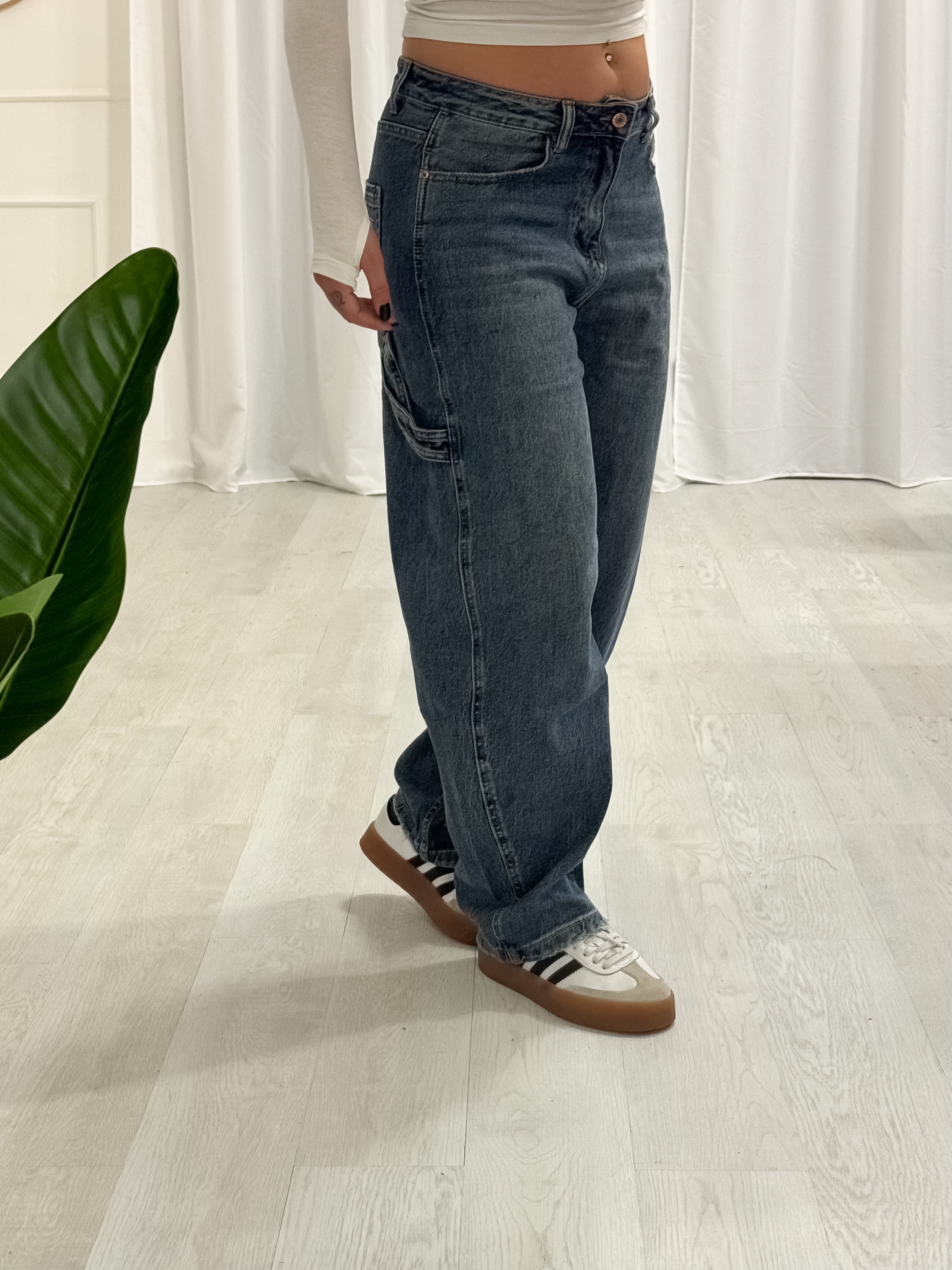 Jeans modello carpenter – tela rigida – 5 tasche – vestibilitร regolare – indosso taglia M