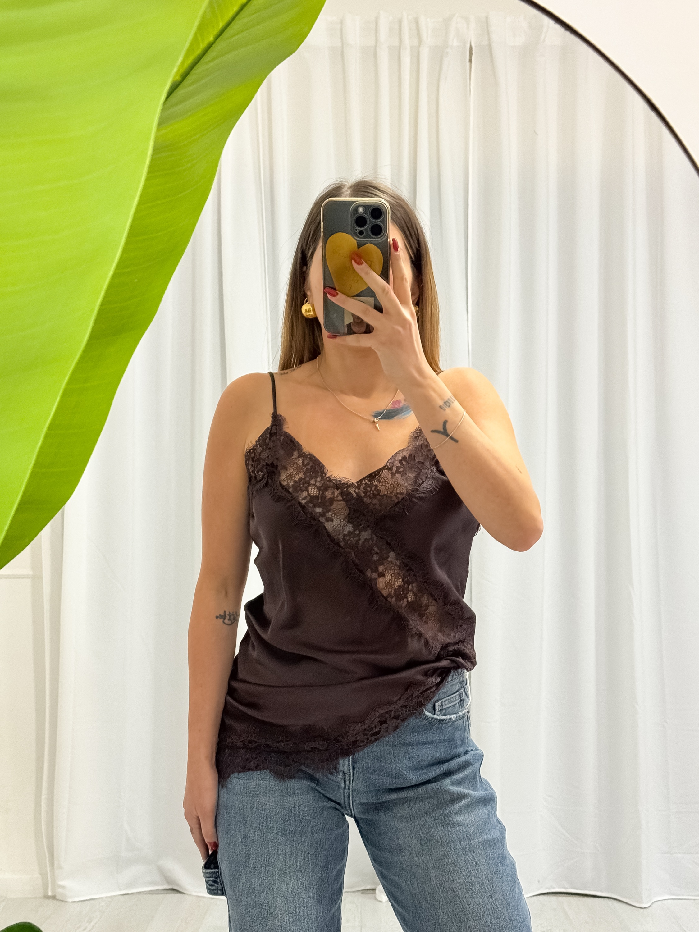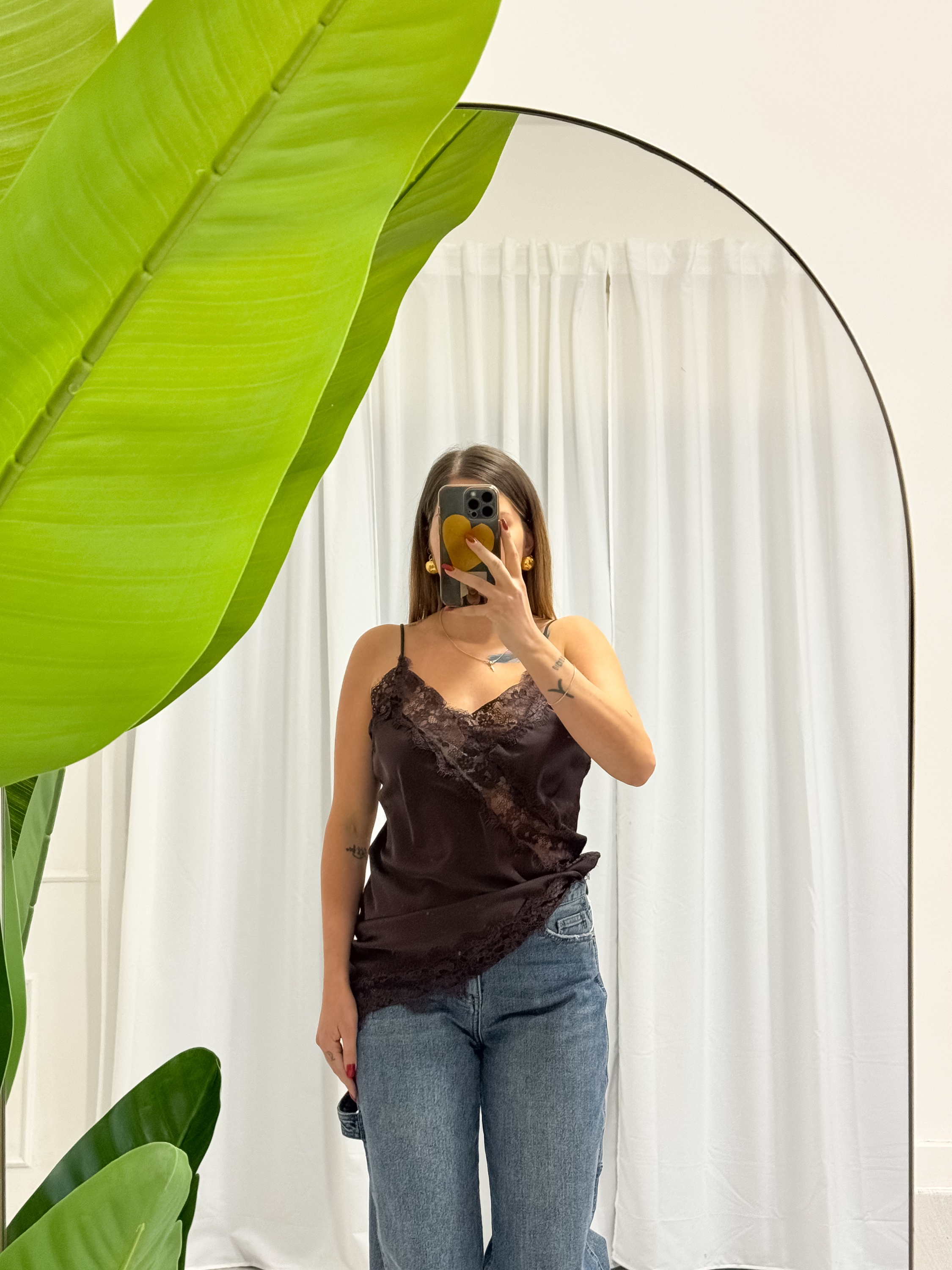 Top satin – asimmetrico – inserti in pizzo – bratelline elastiche