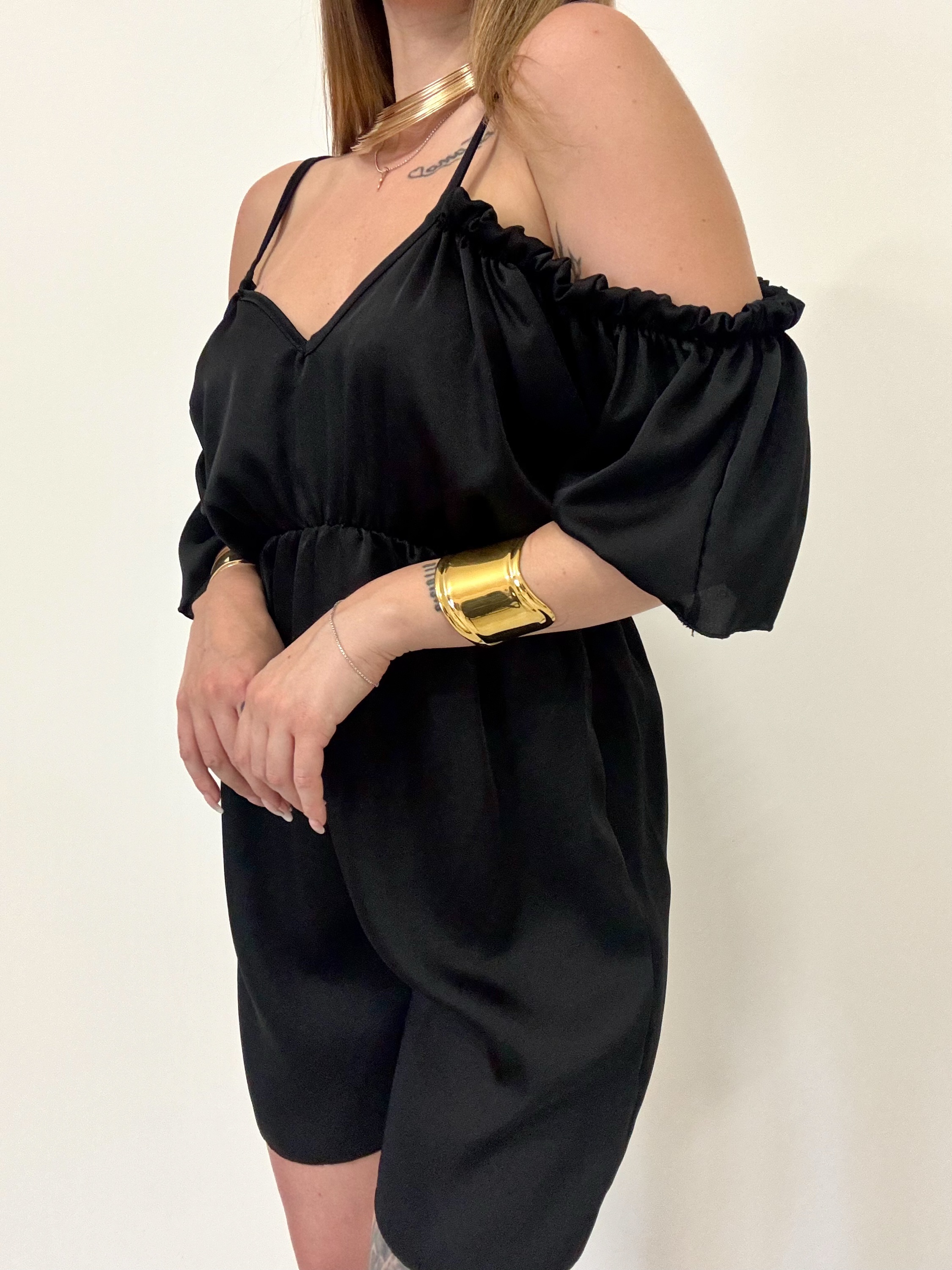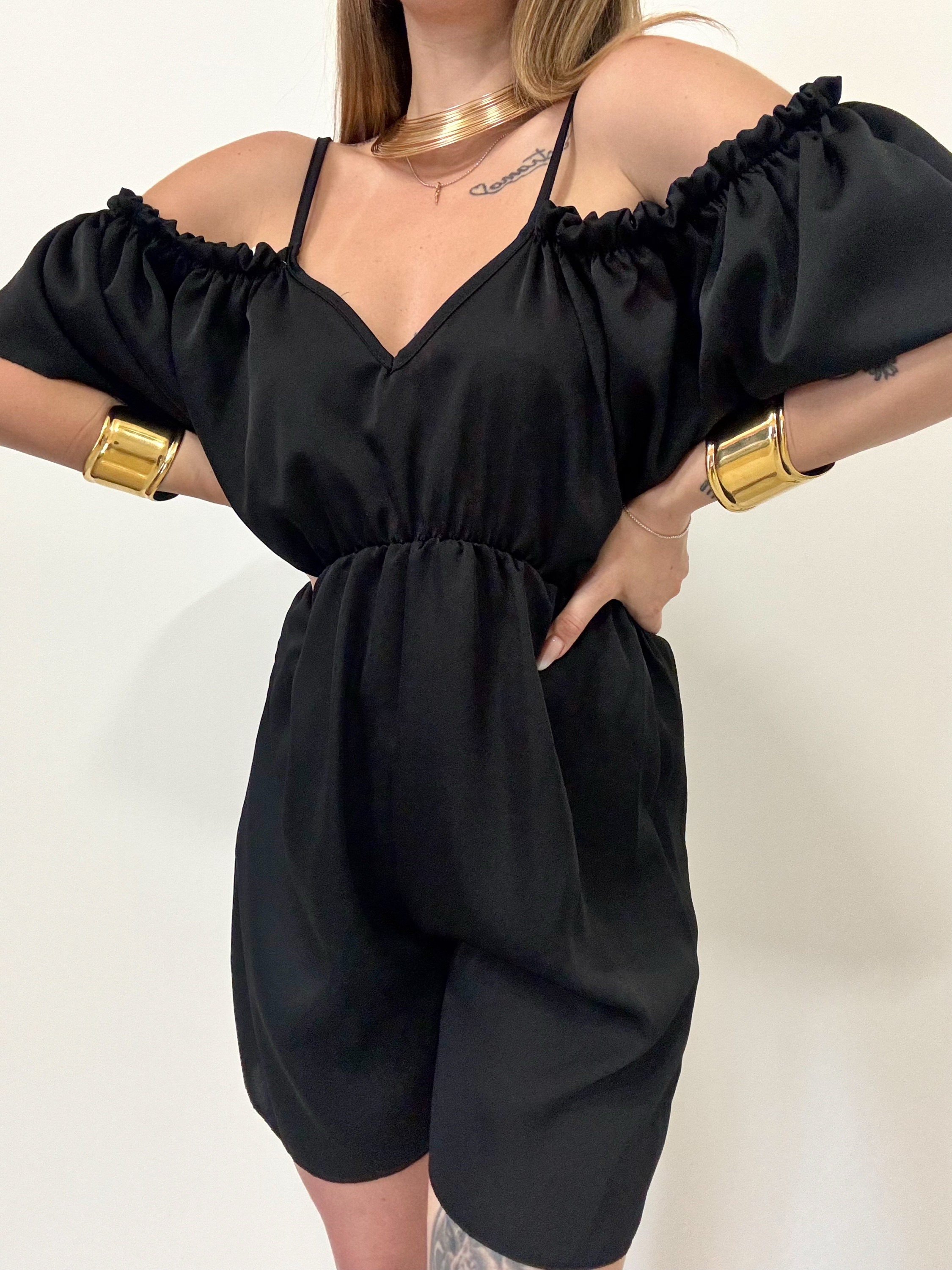 Completamente elasticizzata – elastico in vita – scollo a cuore – mezza manica a sbuffo