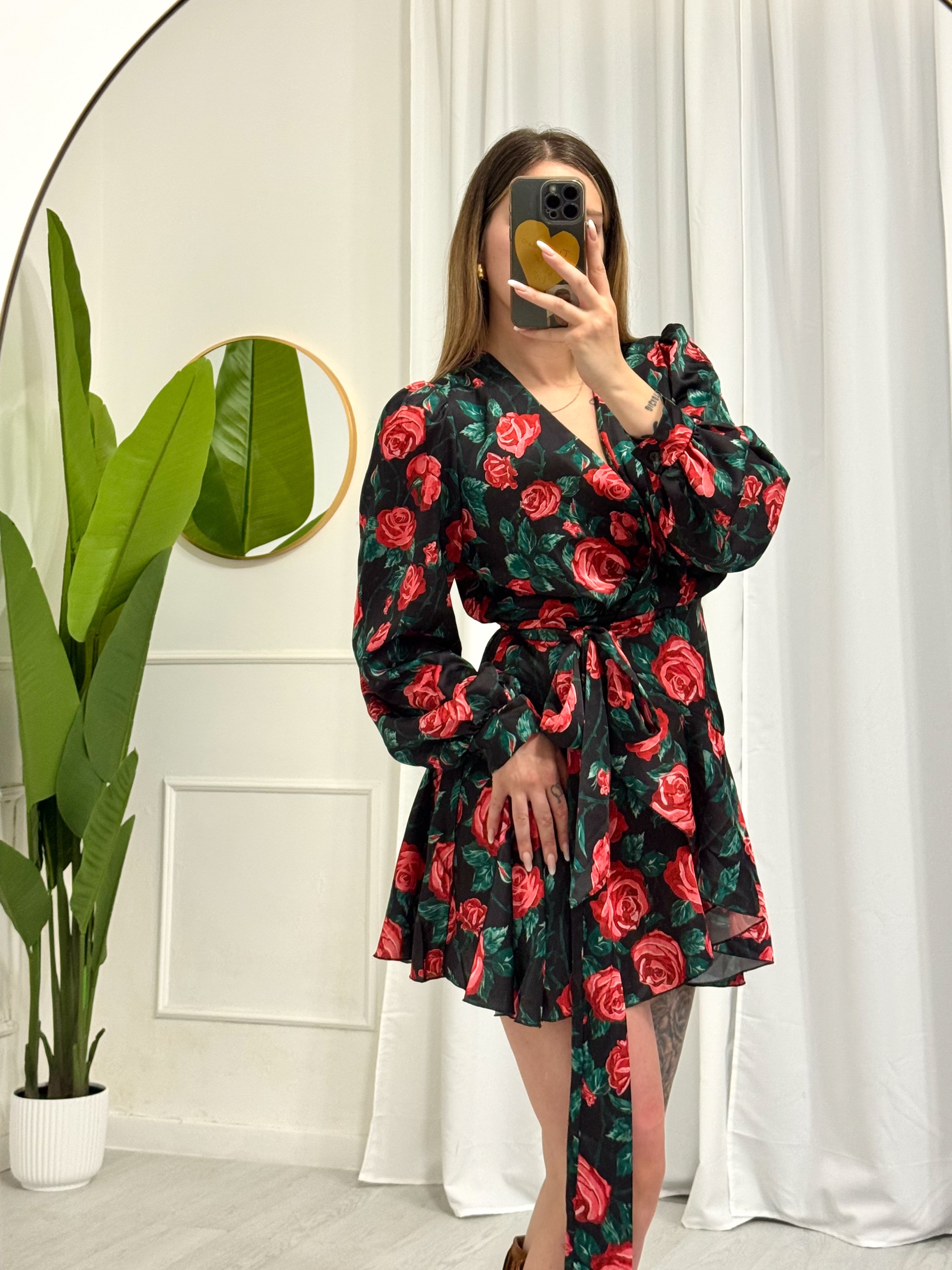 Vestito a portafoglio – si apre completamente – chiusura regolabile – elastico in vita – manica a sbuffo con bottoncini